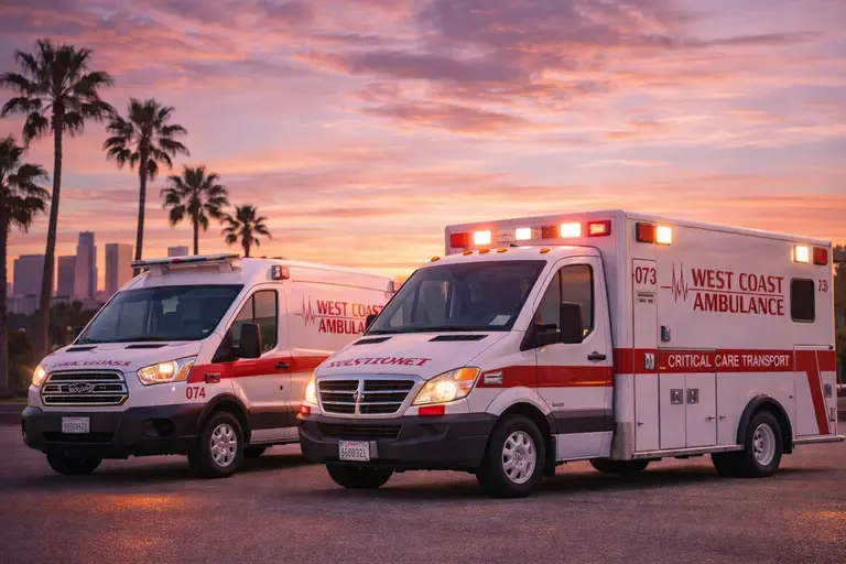 West Coast Ambulance is an independent medical transportation provider covering every city in Los Angeles, Orange, and Kern Counties. We operate across the full spectrum — from non-emergency medical transport (wheelchair, stretcher, dialysis) to BLS and critical care ambulance services — all under one roof, with one number to call.